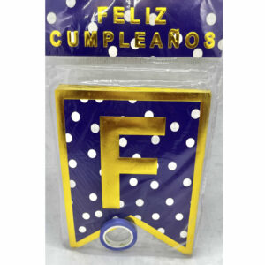 BANDERIN FELIZ CUMPLEAÑOS AZUL LETRAS DORADAS