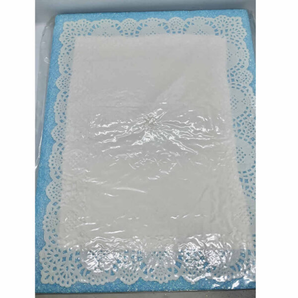 BANDEJA RECTANGULAR CELESTE con gibre para torta, 0,42 cm x 0,32 cm
