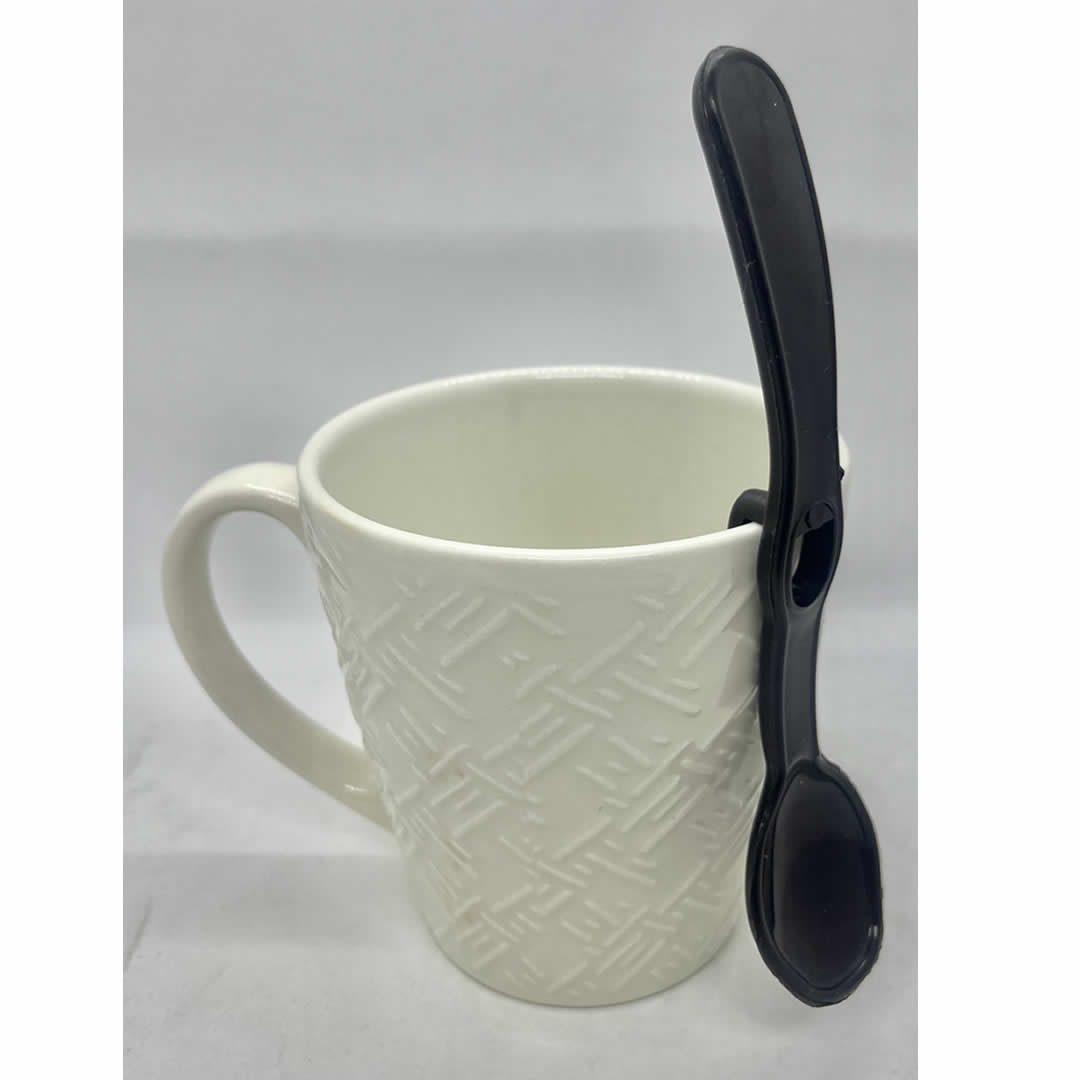 CUCHARA PLASTICO NEGRA con ganchito para sujetarse de la taza