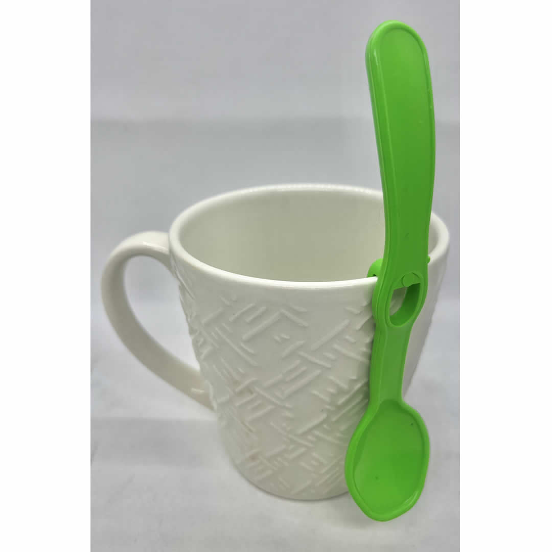 CUCHARA PLASTICO VERDE con ganchito para sujetarse de la taza