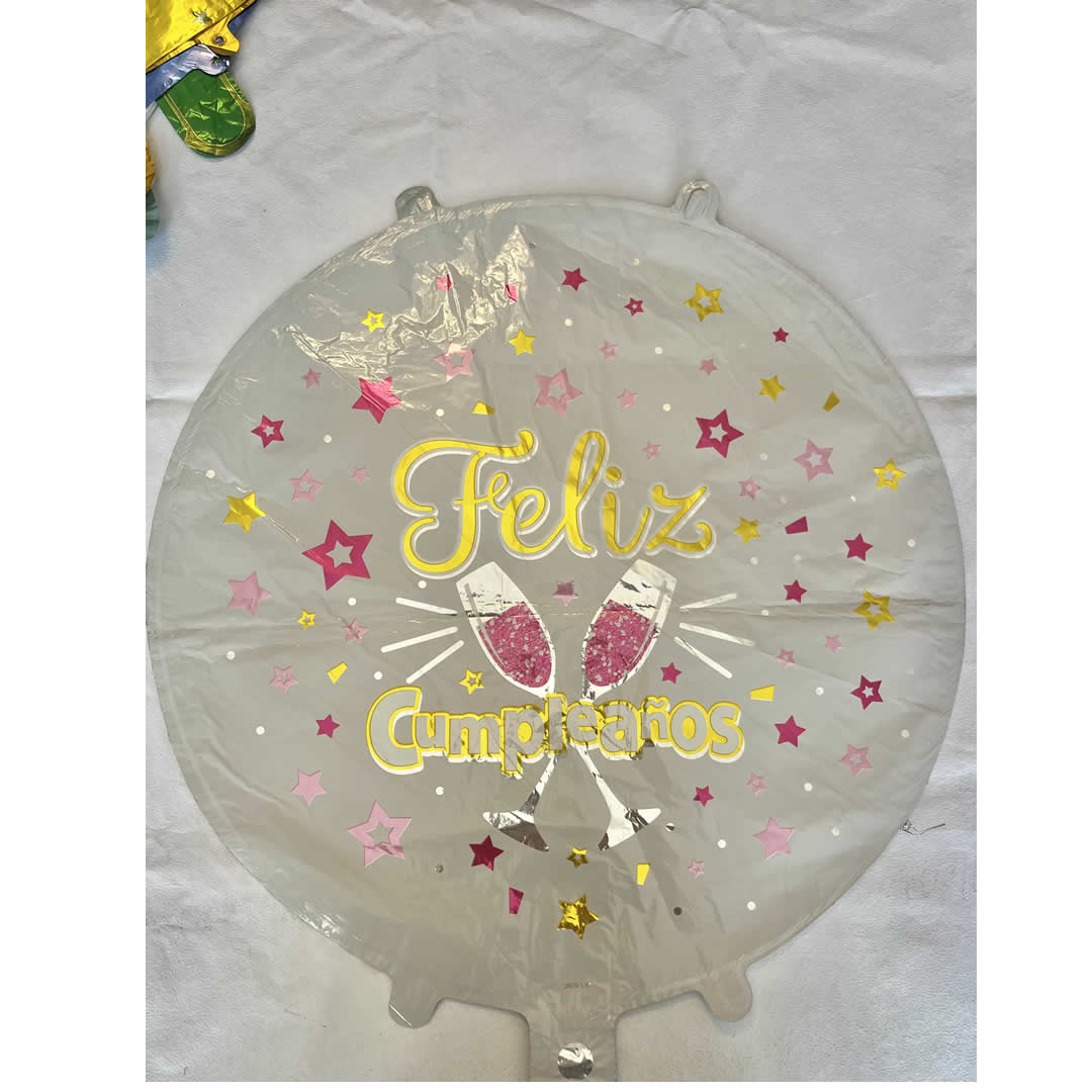 GLOBO FELIZ CUMPLEANIOS BRINDIS, 18″, 45 cm, para inflar con aire o con helio