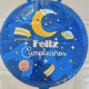 GLOBO FELIZ CUMPLEANIOS ROSA BEBE CON RAYAS, 18″, 45 cm, para inflar con aire o con helio