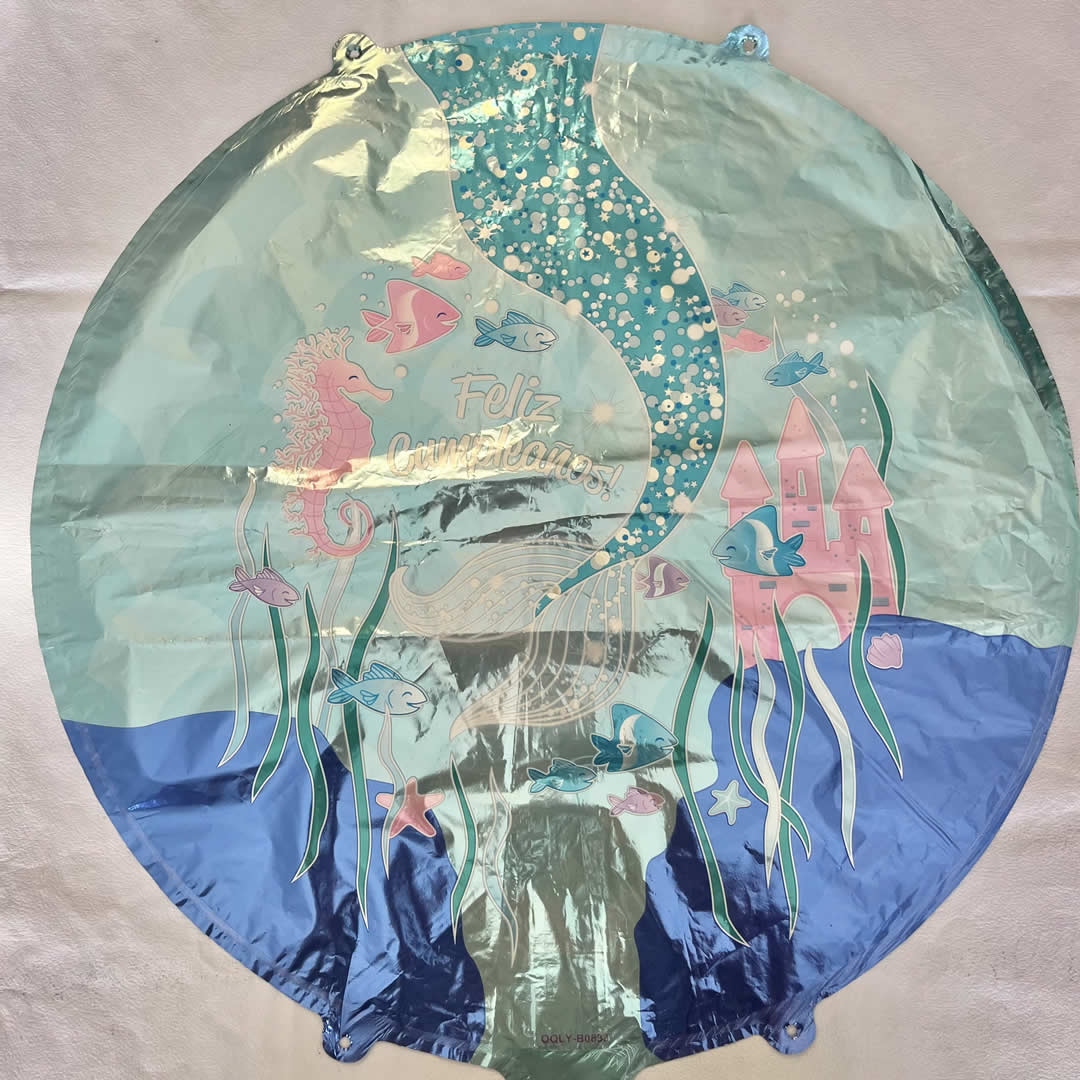 GLOBO FELIZ CUMPLEANIOS SIRENITA, 18″, 45 cm, para inflar con aire o con helio