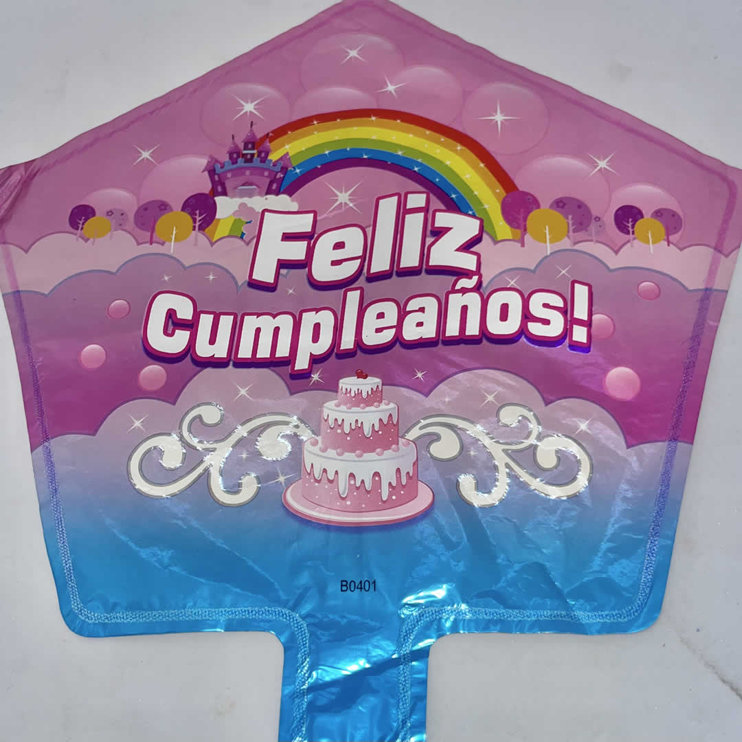 GLOBO FELIZ CUMPLEANOS MINI FORMA ESTRELLA con arcoiris