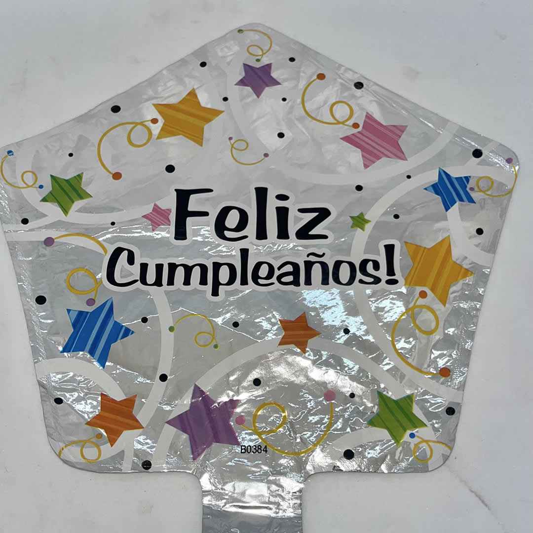 GLOBO FELIZ CUMPLEANOS MINI FORMA ESTRELLA fondo plata