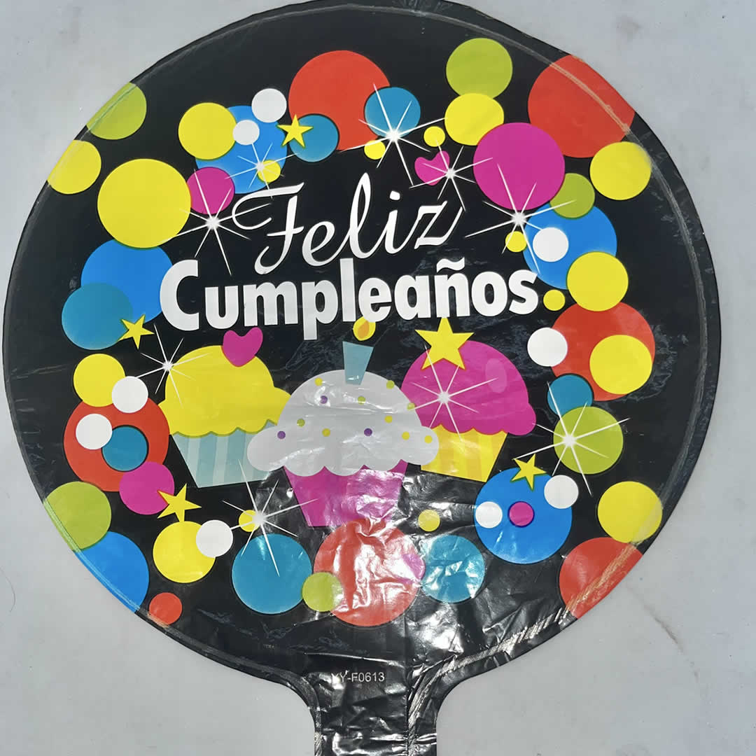 GLOBO FELIZ CUMPLEANOS MINI negro con circulos colores