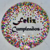 GLOBO FELIZ CUMPLEANOS MINI negro con circulos colores cantidad