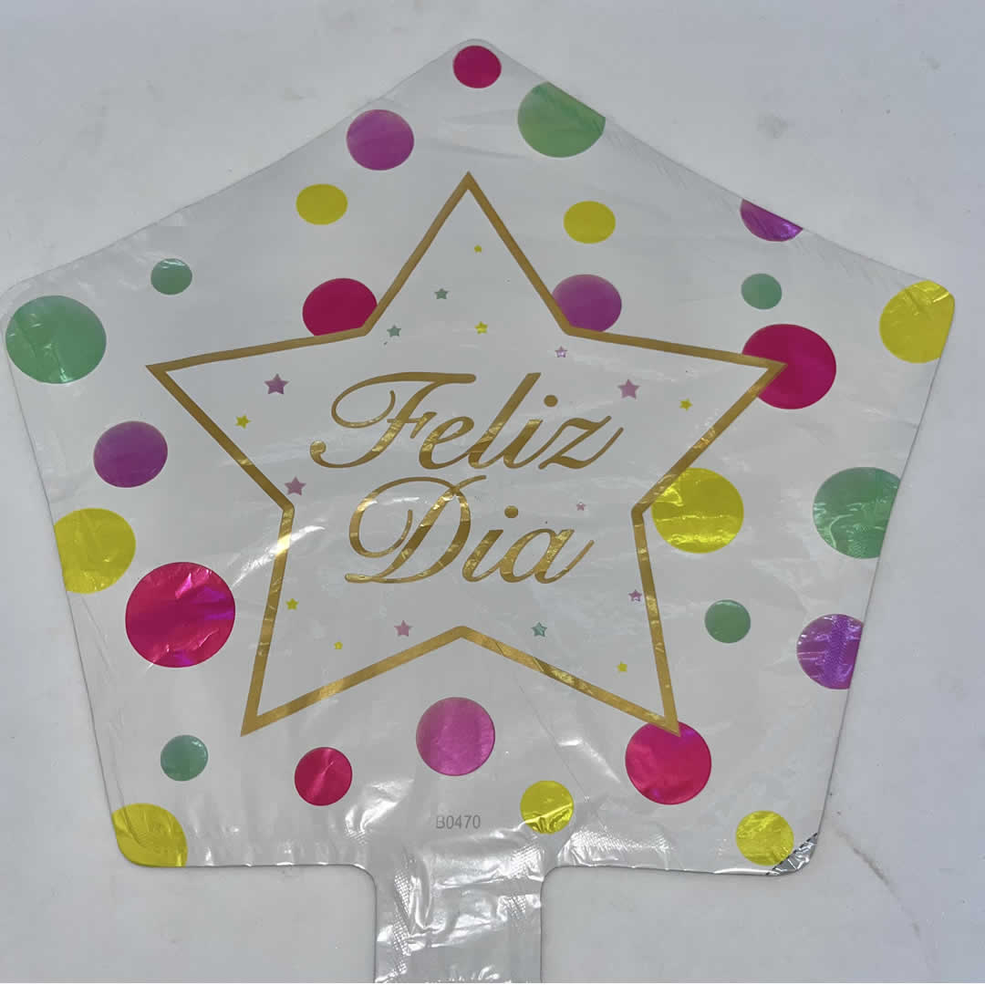GLOBO FELIZ DIA MINI FONDO BLANCO con circulos colores cantidad