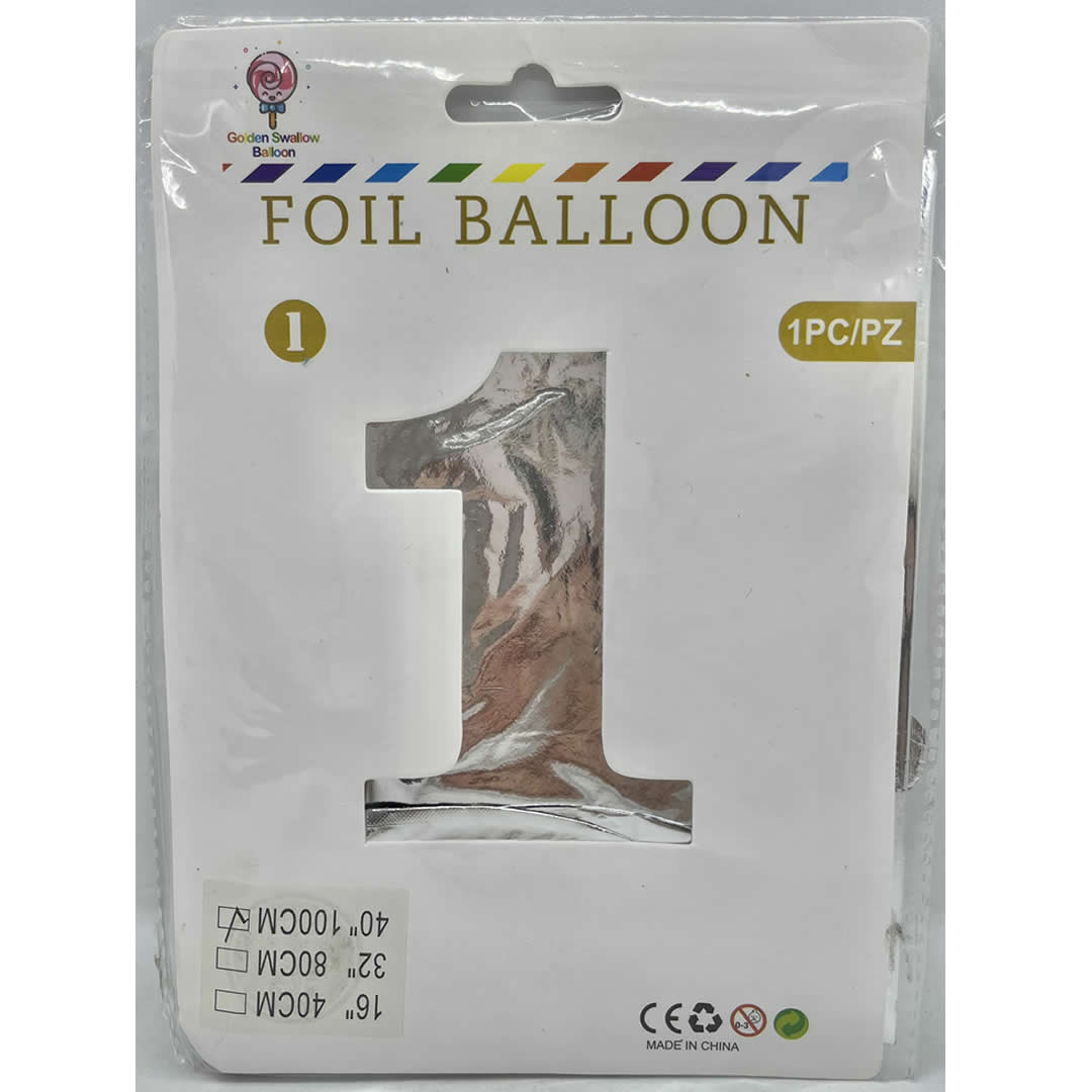 GLOBO NUMERO 1 PLATA 40″, 1 metro, para inflar con helio o aire