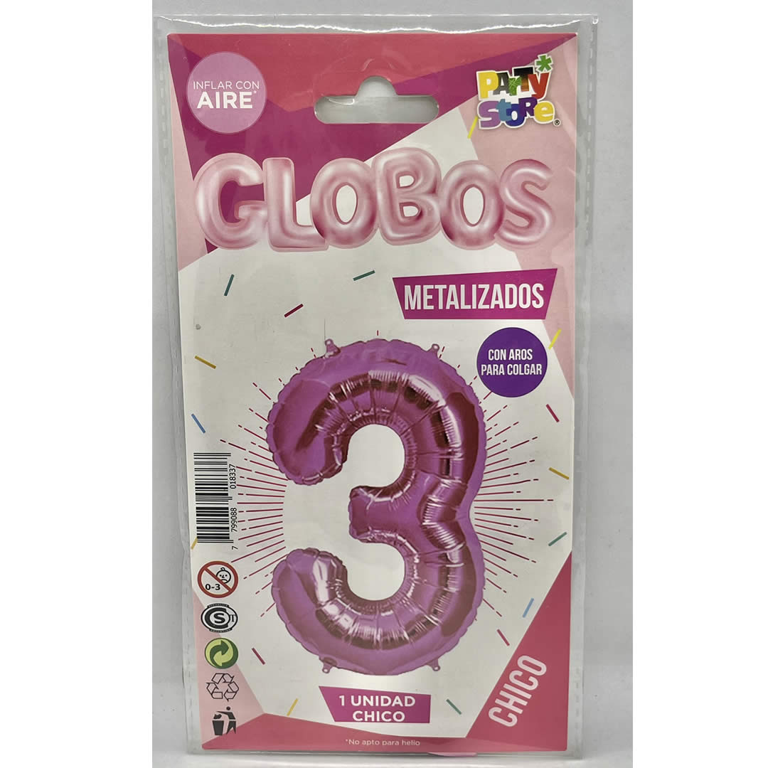 GLOBO NUMERO 3 ROSA 16' cantidad