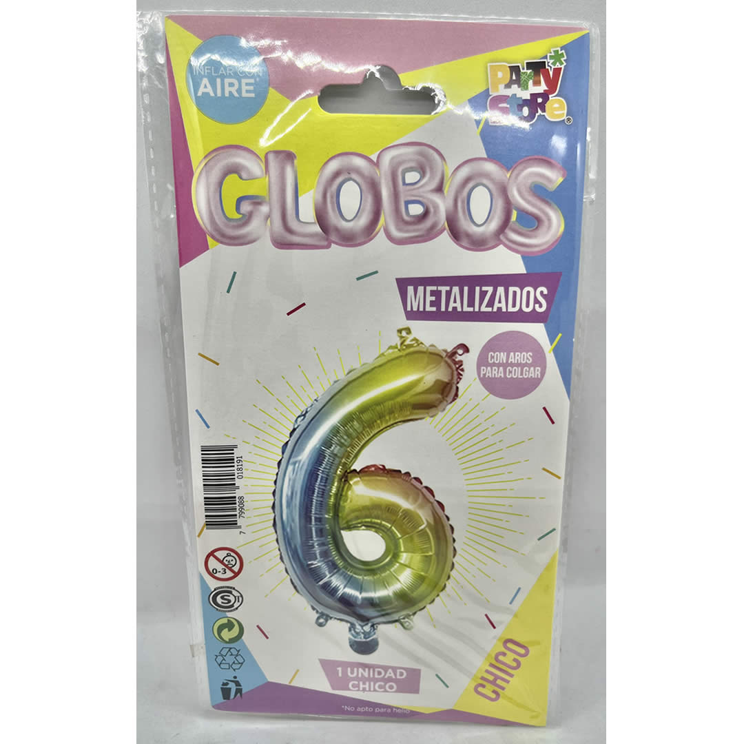 GLOBO NUMERO 6 MULTICOLOR 16′, 40 cm, solo para inflar con aire