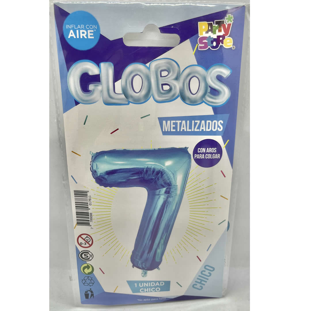 GLOBO NUMERO 7 CELESTE 16″, 40 cm, solo para inflar con aire