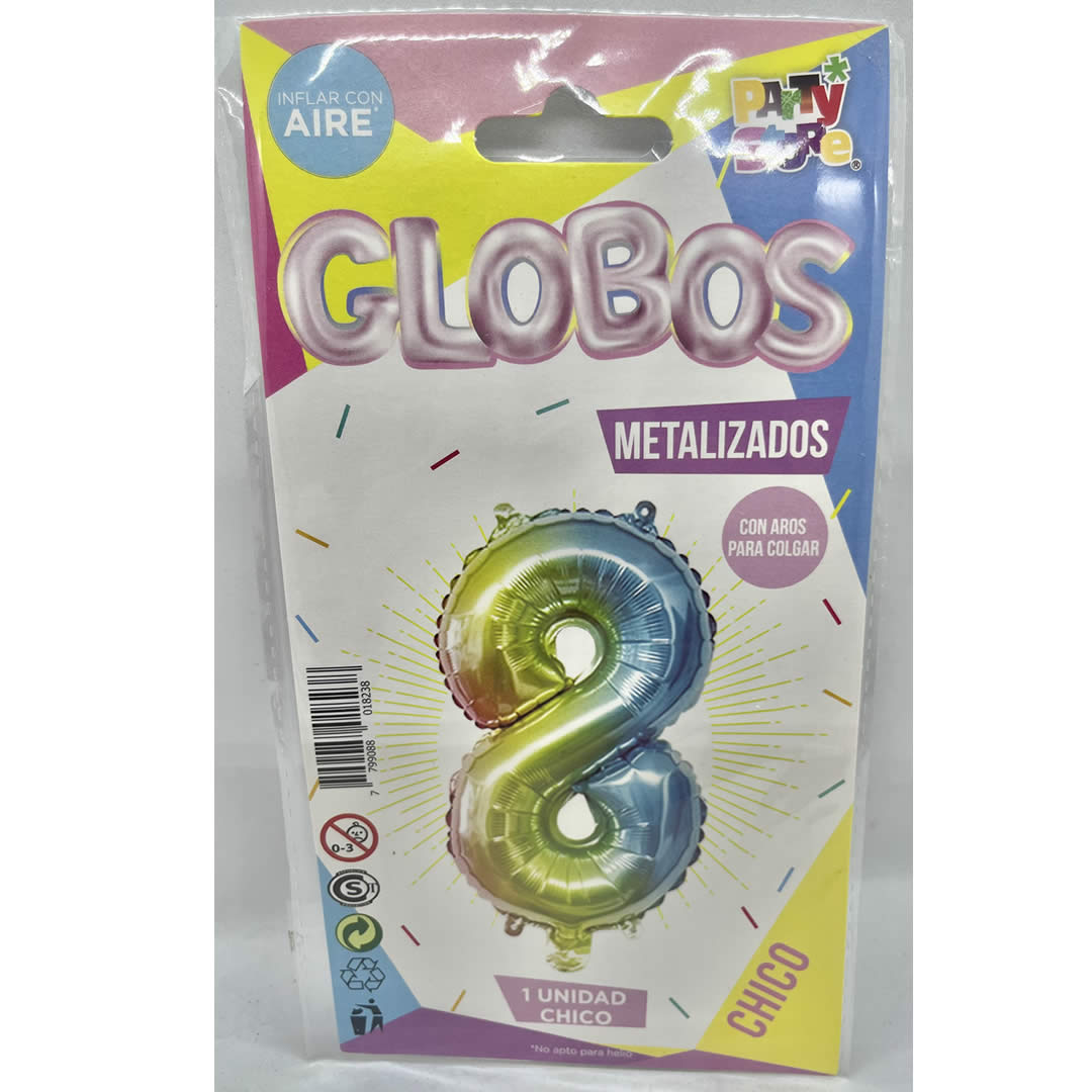 GLOBO NUMERO 8 MULTICOLOR 16′, 40 cm, solo para inflar con aire