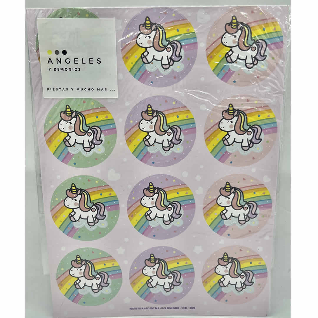 STICKERS UNICORNIO ARCOIRIS 12 unidades cantidad