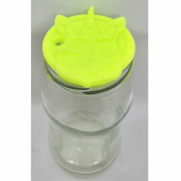 TAPA FRASCO UNICORNIO AMARILLO con agujero sorbete cantidad